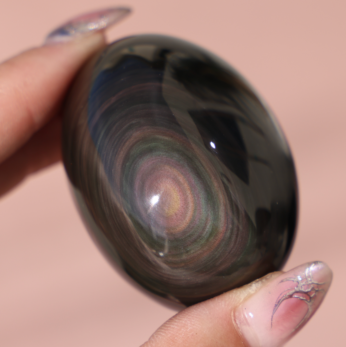 Please note: This stone has been photographed under professional studio lighting to reveal its full spectrum of iridescent hues. In everyday home environments, the colors will appear more subtle. For the most breathtaking effect, enjoy this piece under direct sunlight or intense lighting, where its hidden fire comes alive.